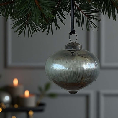 Antique blue grey etched bauble