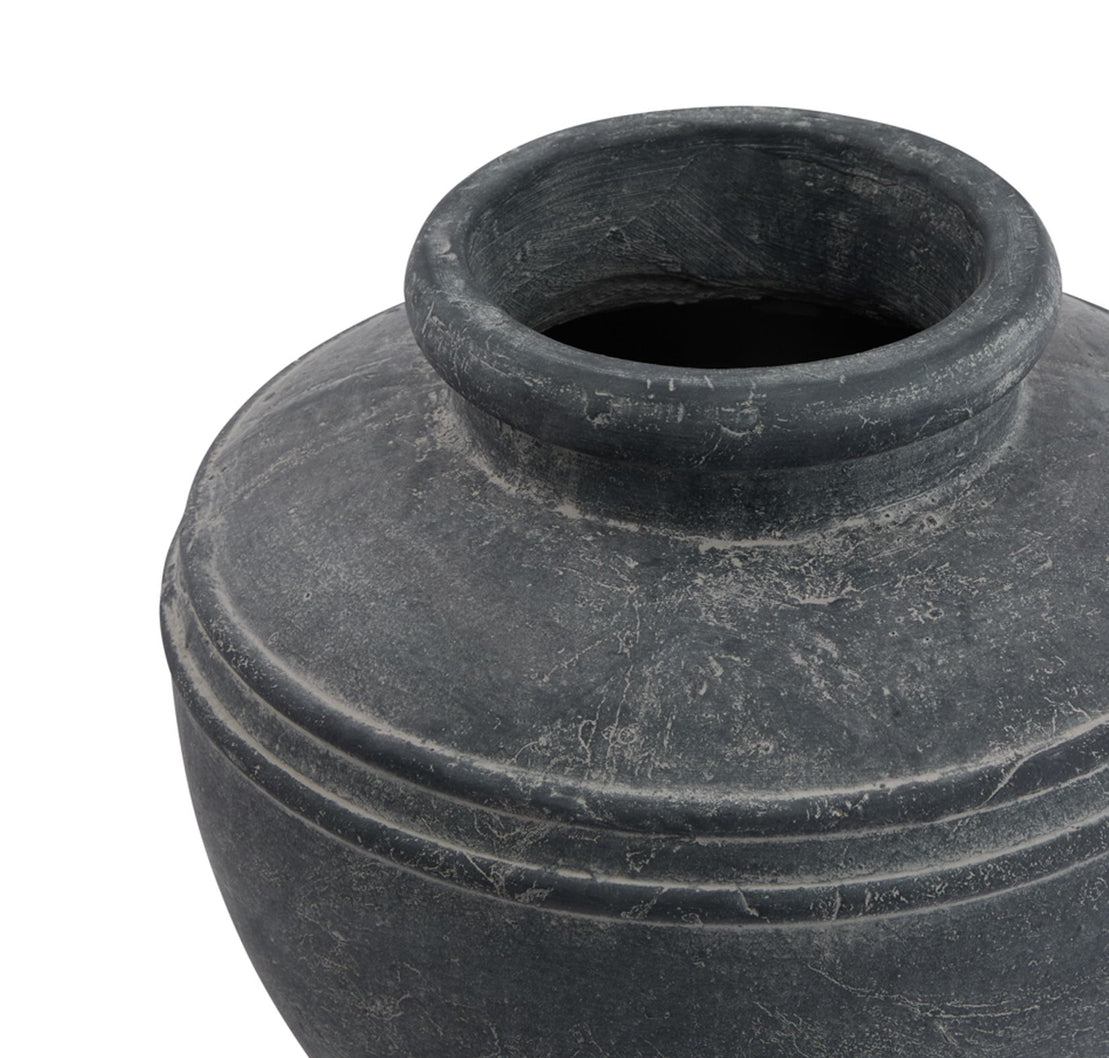 Exuding Mediterranean authenticity, this weathered grey Amalfi water pot brings timeless character to any space. The robust ceramic form features classic ribbed detailing and an elegant wide neck, perfect for both indoor and outdoor styling. Pair with natural materials and dried botanicals.