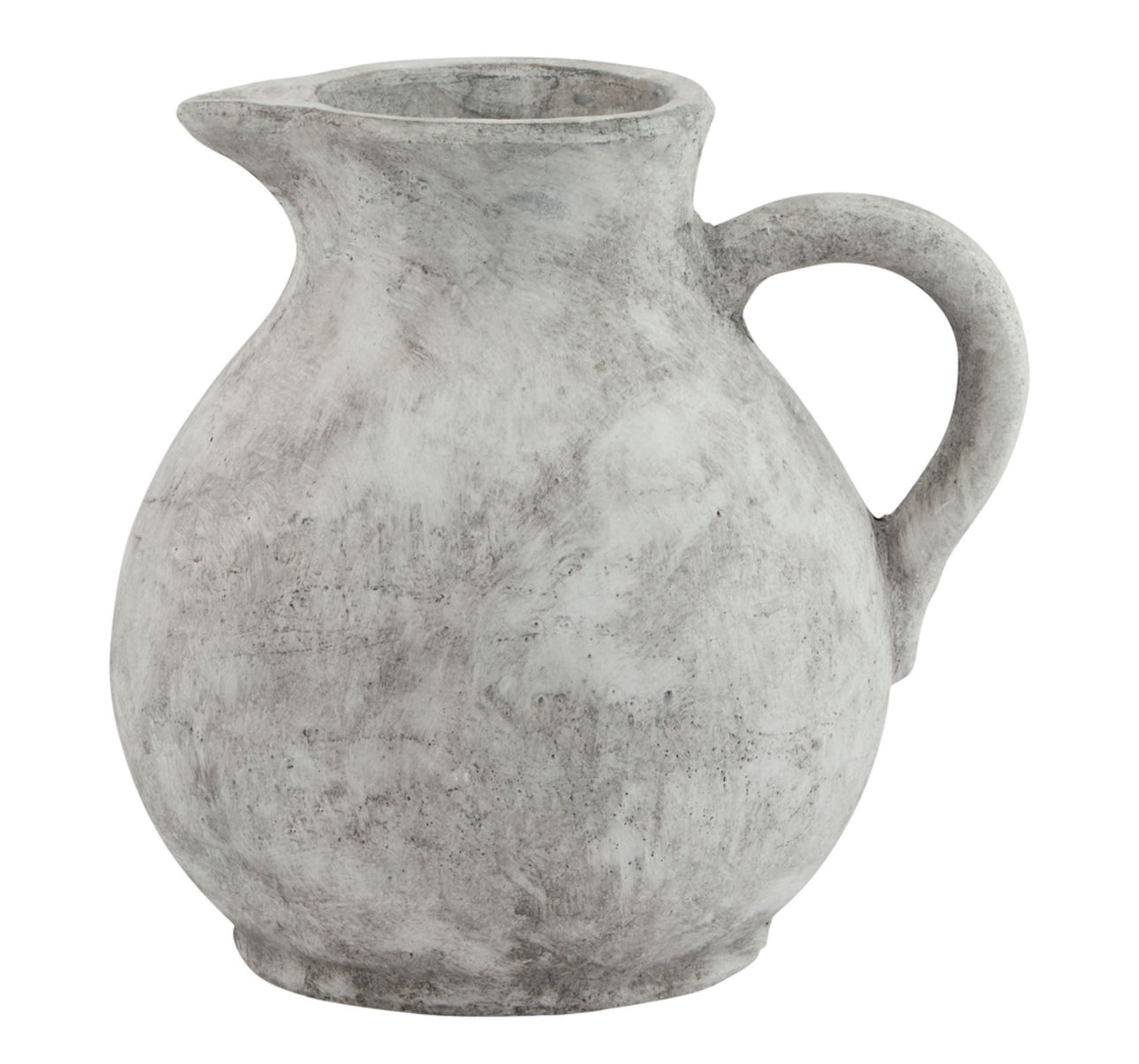Channeling timeless Mediterranean charm, this concrete Athena jug's distressed grey finish and graceful curves make it a versatile statement piece. Perfect for fresh florals with florist wrap or as standalone decor, it pairs beautifully with both rustic and modern interiors.