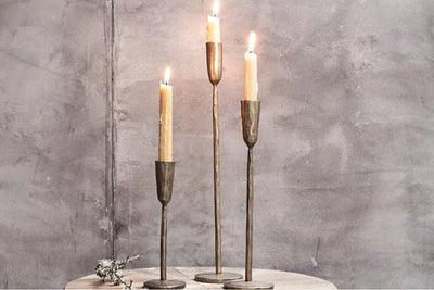 Hammered brass candlestick small