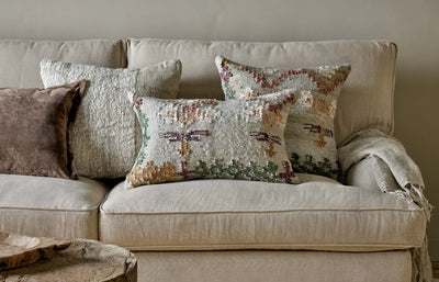 Etta Embroidered Linen Cushion Cover - Natural & Rust