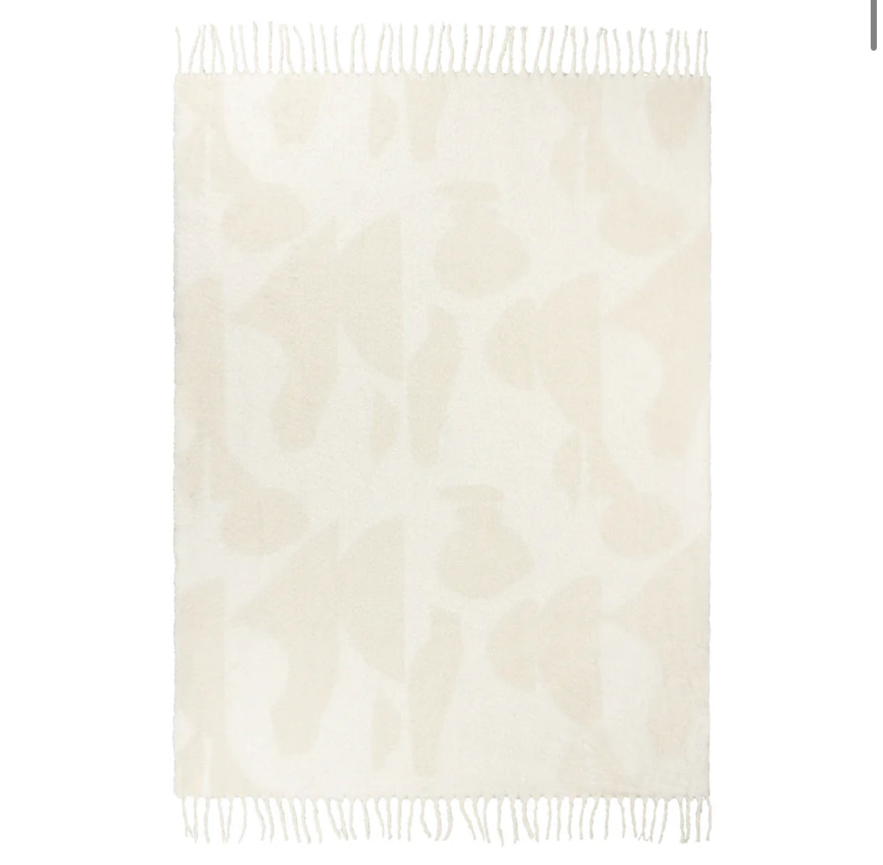 Inspired by modern and minimalist art; the abstract throw features a multitude of fluid abstract jacquard shapes, on an ultra-soft faux mohair fabric. Complete with twisted tassel edging on both sides, this design is perfect for layering within any neutral interior.